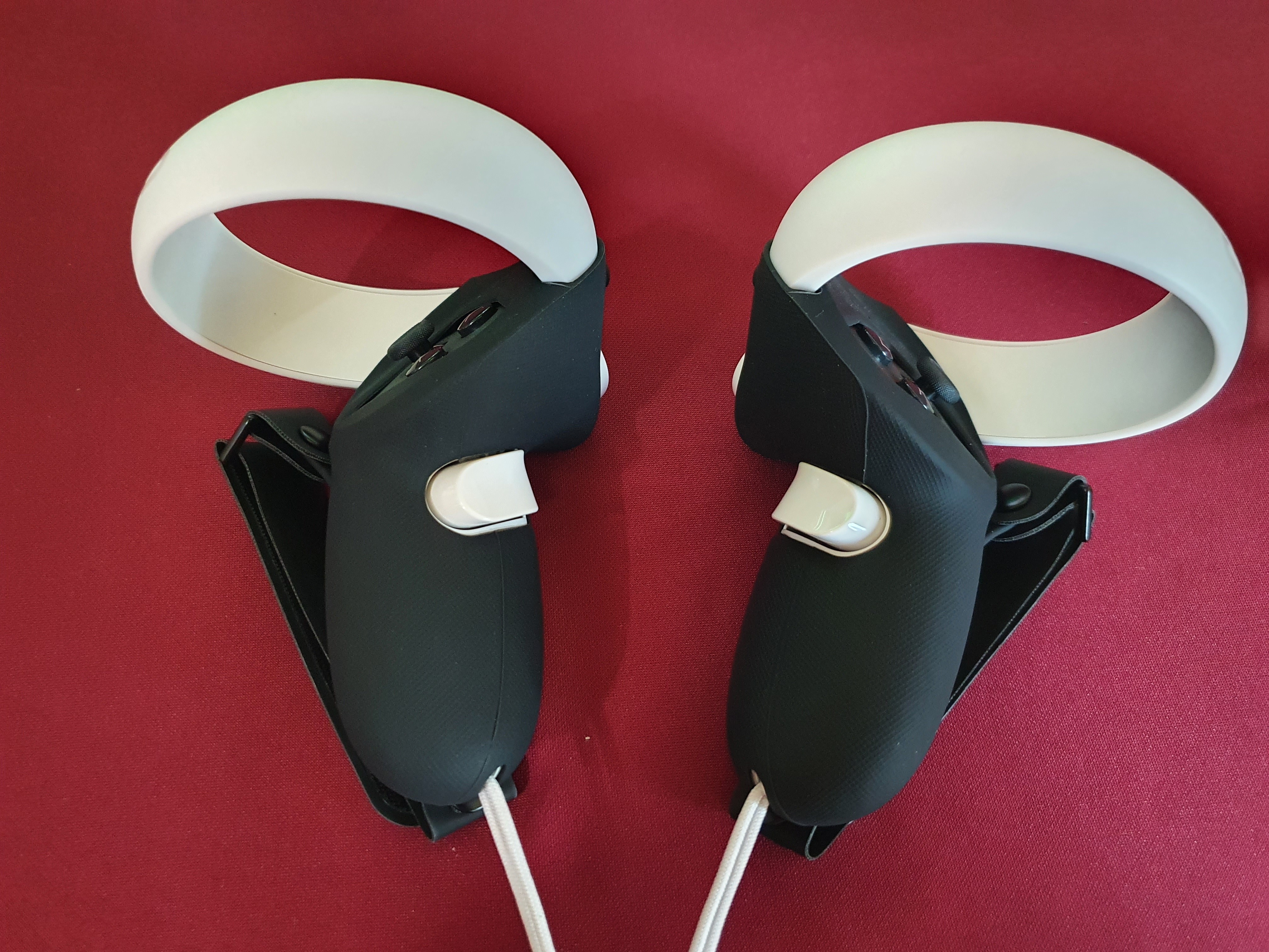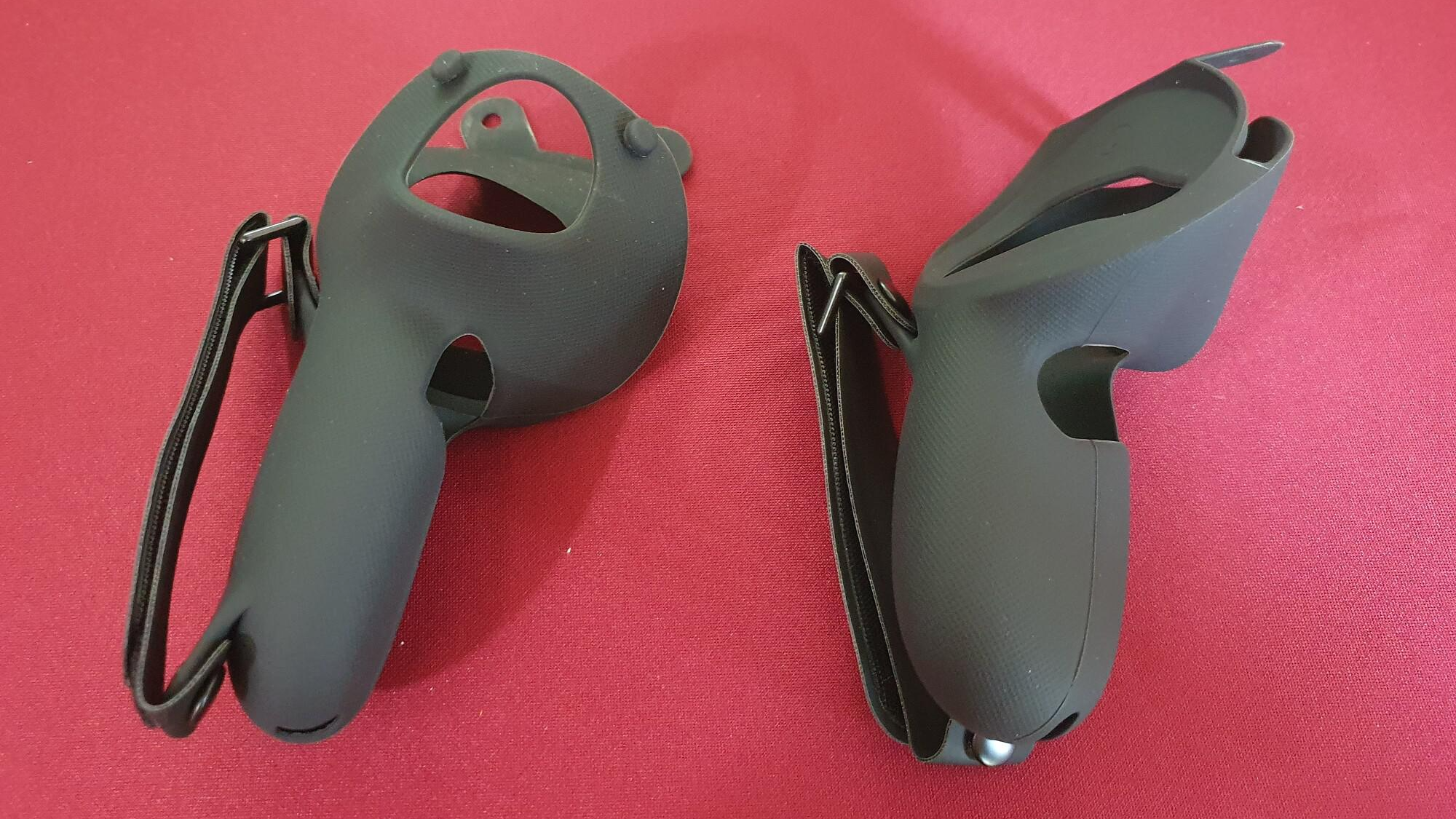 전체적인 소재는 실리콘이며 색상은 흑색입니다. 화이트톤인 퀘스트2 컨트롤러와 나름 잘 어울리는 편입니다. 처음열었을 때는 실리콘 냄새가 좀 많이 납니다.