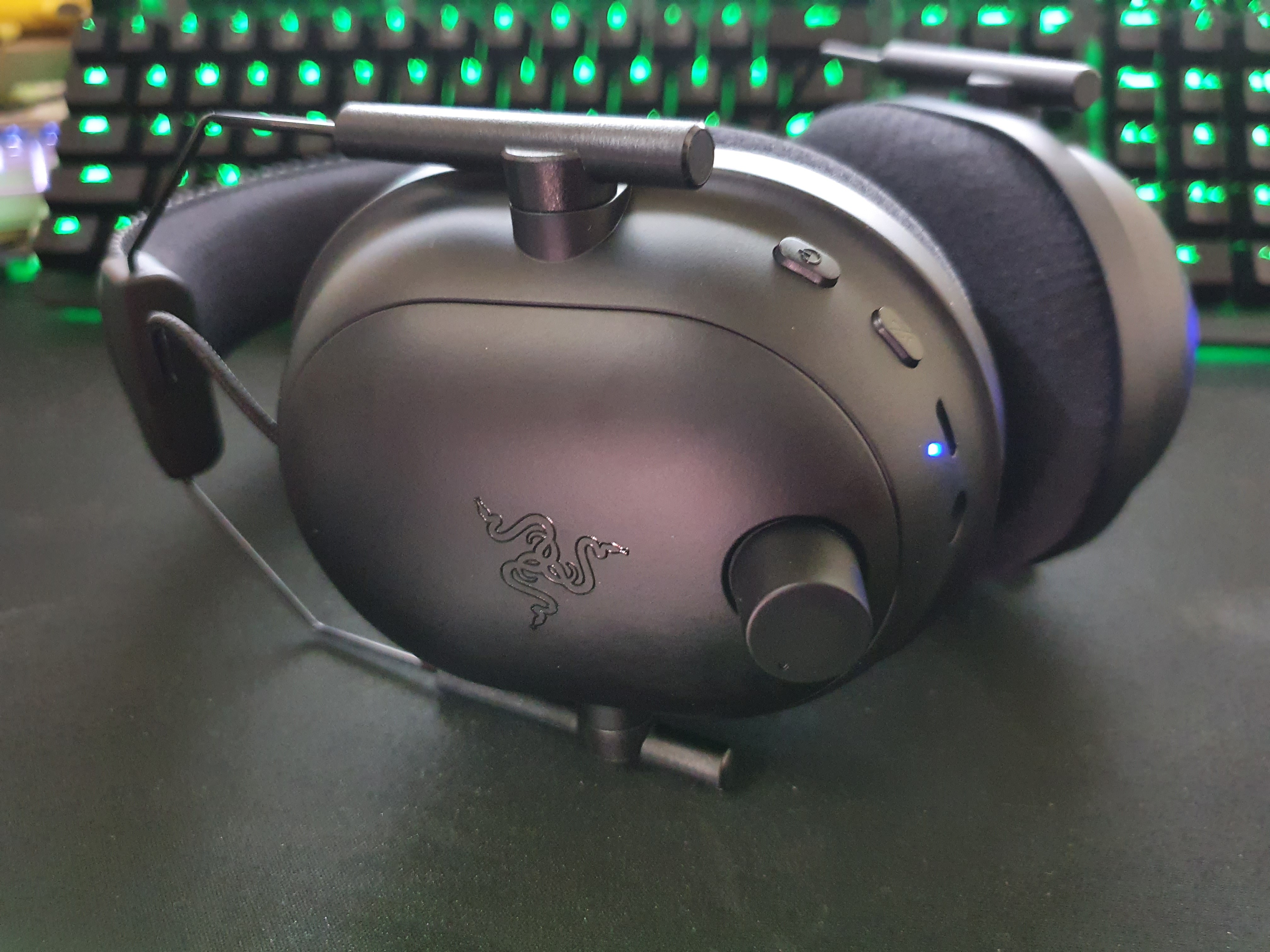 무선 헤드셋 치고 무척 가벼운 무게(약 320g)와 편안한 이어캡은 장시간 사용에도 귀에 부담을 주지 않아 정말 편하게 사용하였습니다. 배터리 수명은 최대 24시간으로 표기되어 있으며, 레이저 시냅스 앱을 통해 남은 배터리 잔량을 실시간으로 확인하고, 사용자 환경에 맞는 EQ 및 공간감 구성을 사용할 수 있습니다. 또한 음량 조절 다이얼은 중간 음량에서 한번 걸리게 설계되어 조작감이 상당히 좋았습니다.