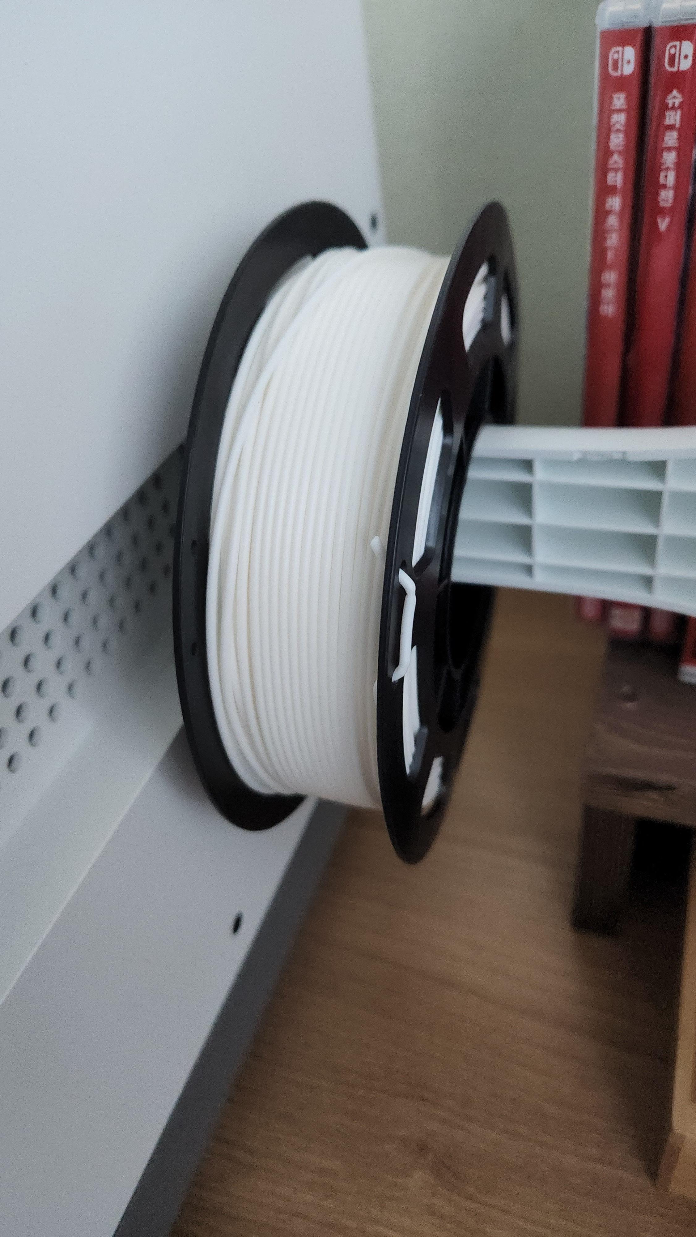 제품 우측에 접이식 필라멘트 거치대가 있습니다. 기기 내부에 필라멘트를 거치하는 제품도 봤었는데 외부에 거치하는게 혹시라도 모를 필라멘트 꼬임이라던가, 대용량 필라멘트 사용을 하는데 있어 더 편한 것 같아요. 그리고 챔버가 완전히 밀폐되서 유해한 물질들이 안에 있길 바랬는데 챔버자체에도 통풍구가 있고, 인쇄시 자동으로 배기가 작동되기 때문에 꼭 환기가 잘 되는 공간에서 사용하시길 바래요. 예전에 조립식 Anet A8을 사용했었는데 그때는 잘 안눌리는 버튼을 일일히 눌러주느라 손도 아프고 인쇄할땐 흔들릴까봐 누르지도 못했는데요, V1제품군은 기본적으로 4.3" 터치스크린으로 제품을 조작하고 터치감도 무척 좋기 때문에 조작이 너무나도 간편했습니다. UI도 심플하고 직관적으로 되어 있어 한글지원은 안되지만 쓰는데 큰 무리는 없을 듯 해요.