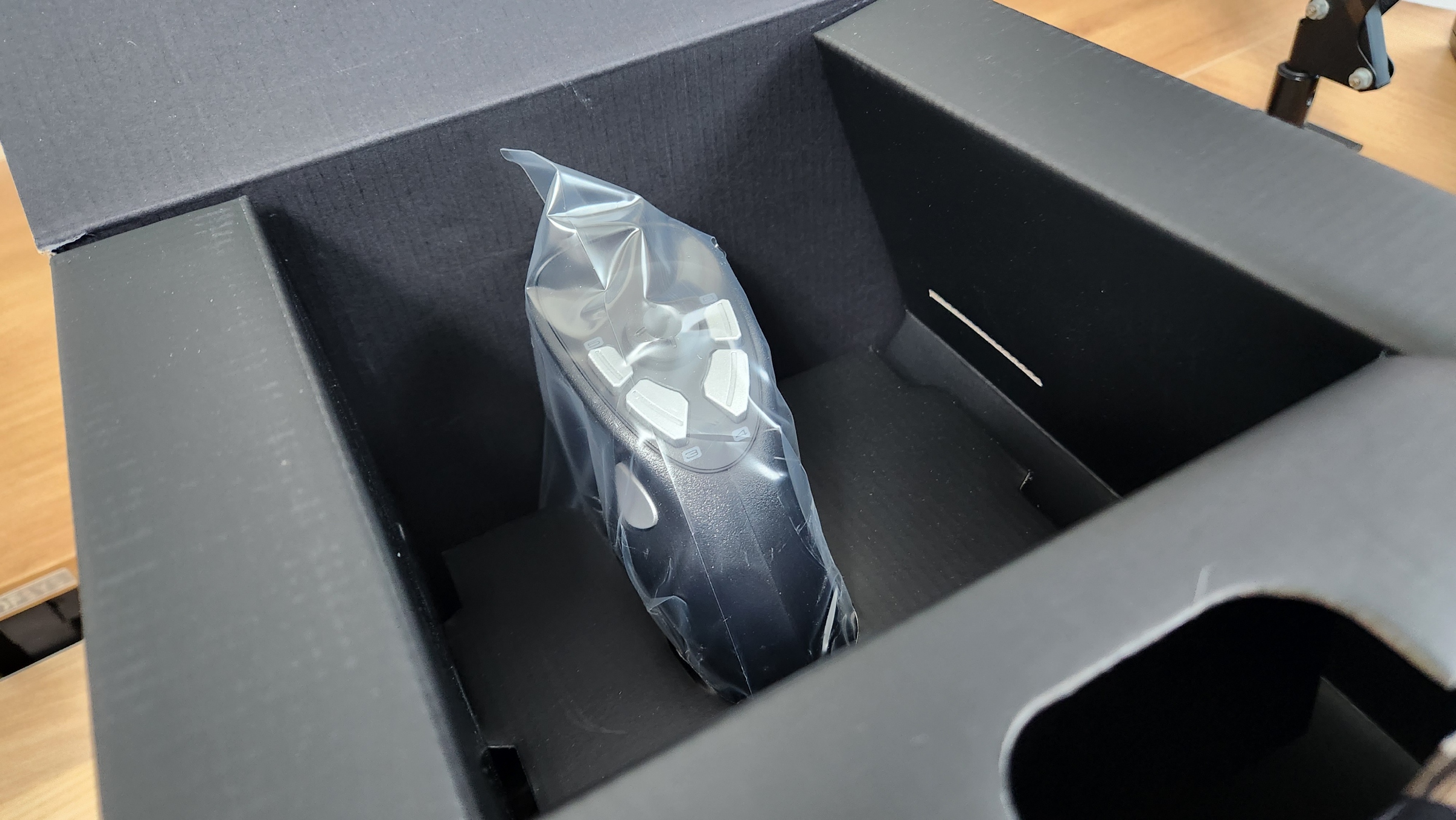 박스 뚜껑을 열면 박스를 이용해 조이스틱이 흔들리지 않게 잘 포장이 되어 있습니다.