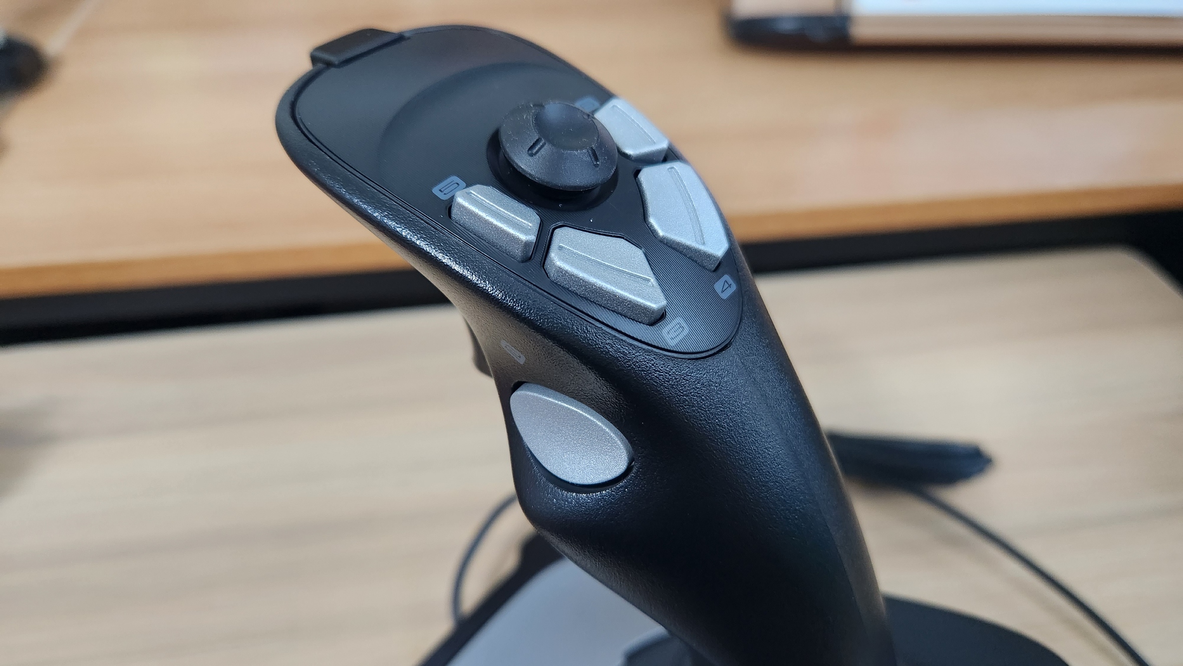 6개의 추가 버튼과 스로틀은 반대손을 사용한다면 큰 무리 없이 조작할 수 있지만 개인적으로 스틱에 붙어있는 버튼에 비해 조작감은 그리 좋지 않았습니다. 그래서 저는 스로틀이나 추가버튼은 사용하지 않고 대신 반대편 손으로는 키보드로 조작을 하였습니다. 스로틀 레버는 저항이 거의 없다보니 너무 쉽게 움직이는 감이 있었고 추가 버튼은 눌리는 깊이가 깊지 않은 것에 비해 저항이 큰편이어서 생각 없이 누르면 입력이 씹히는 경우가 종종 있었습니다.