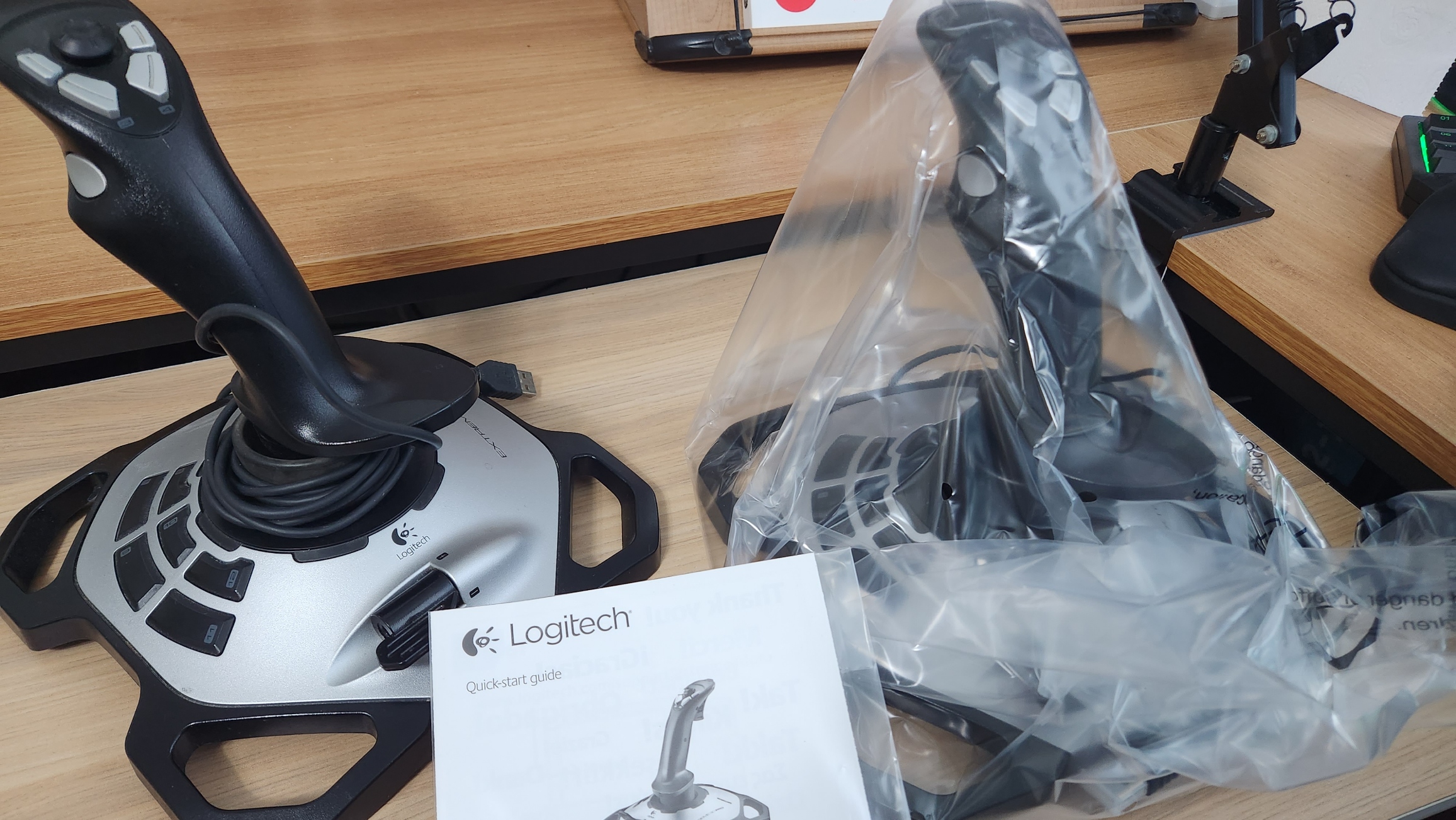 구성품은 조이스틱 본체와 메뉴얼로 단촐합니다. 왼쪽이 제가 사용하던 조이스틱이고 오른쪽이 이번에 산 조이스틱인데 시간이 많이 흘렀음에도 디자인에 있어 변경점은 없는 것 같습니다.