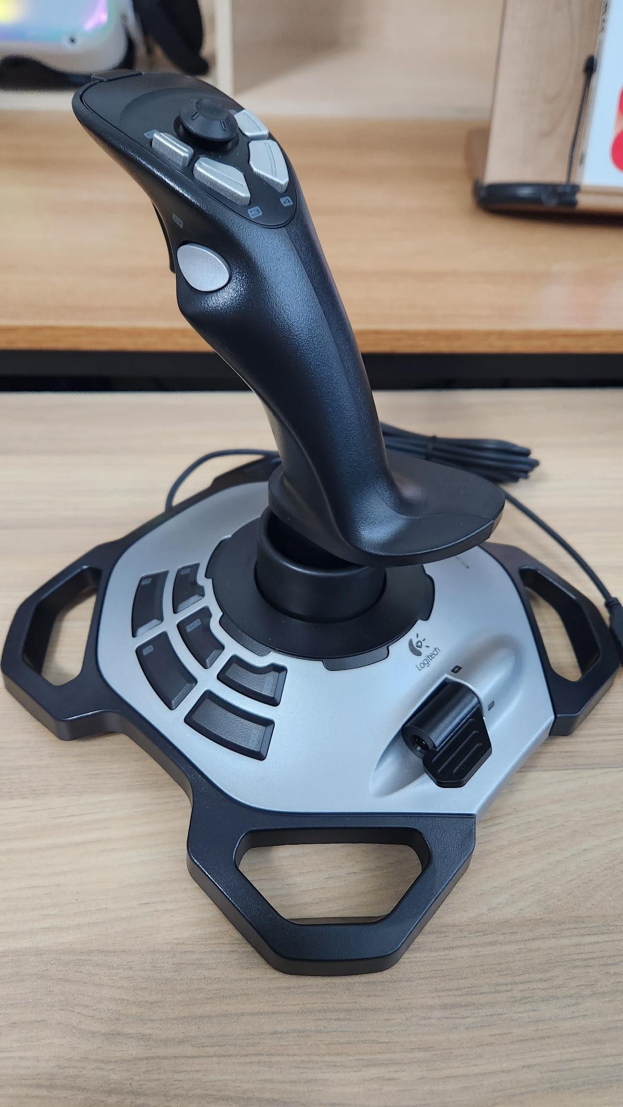 위에서도 언급했듯 스틱부에 배치된 버튼의 클릭감이나 배치는 매우 훌륭한 편이나 스로틀 레버와 몸체에 배치된 6개의 추가 버튼은 개인적인 기준으로 다소 실망스러운 조작감을 보여주었습니다. 특히 스로틀은 다이얼 방식이고 전혀 걸리는 부분이 없다보니 스로틀 하나로 역추진까지 사용해야 하는 경우나 아이들 상태로 출력을 유지해야 하는 경우가 많다면 다소 사용하기 어려울 수 있습니다. 이런점에서는 차라리 슬라이드 방식에 스로틀이 낫지 않았을까 하는 생각도 들었습니다. 또 다른 단점으로는 출시된지 오래된 제품이다보니 최신 logitech 소프트웨어에서 인식되지 않기 때문에 별도의 소프트웨어를 사용해야 합니다. 물론 게임패드로 설정되어 있어 인게임에서 즉시 키를 할당할 수 있긴 하지만, 패드 설정을 지원하지 않는 게임을 하기 위해서는 별도의 구식 소프트웨어를 사용해야 한다는 점은 단점이라고 생각되었습니다.