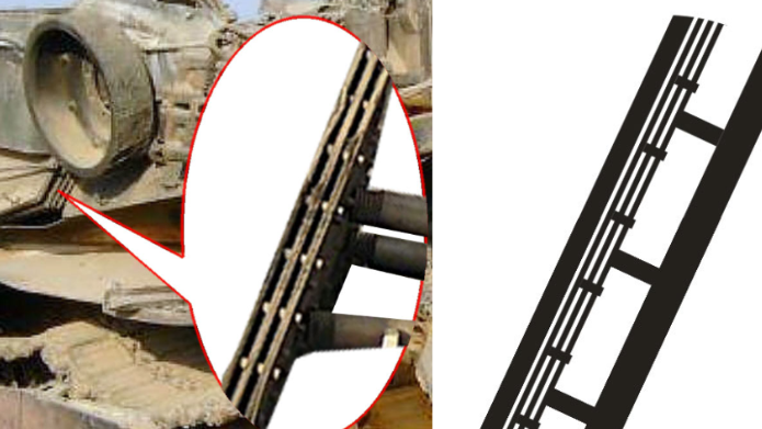 슬랫아머는 시가지에서 RPG-7의 대전차 공격 정도를 견뎌낼 목적으로 장착한 장갑이기 때문에, 현대의 전차전이나 대전차 공격을 견뎌내기는 무리가 있습니다.