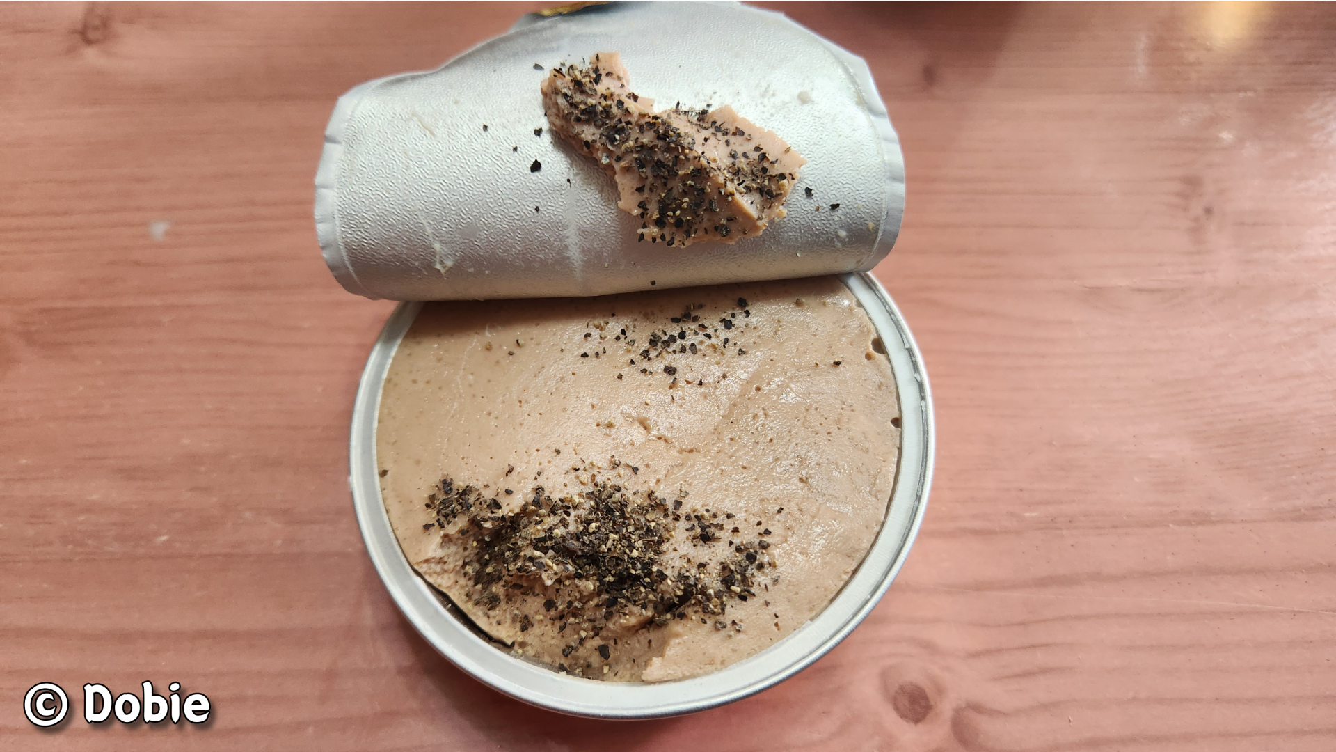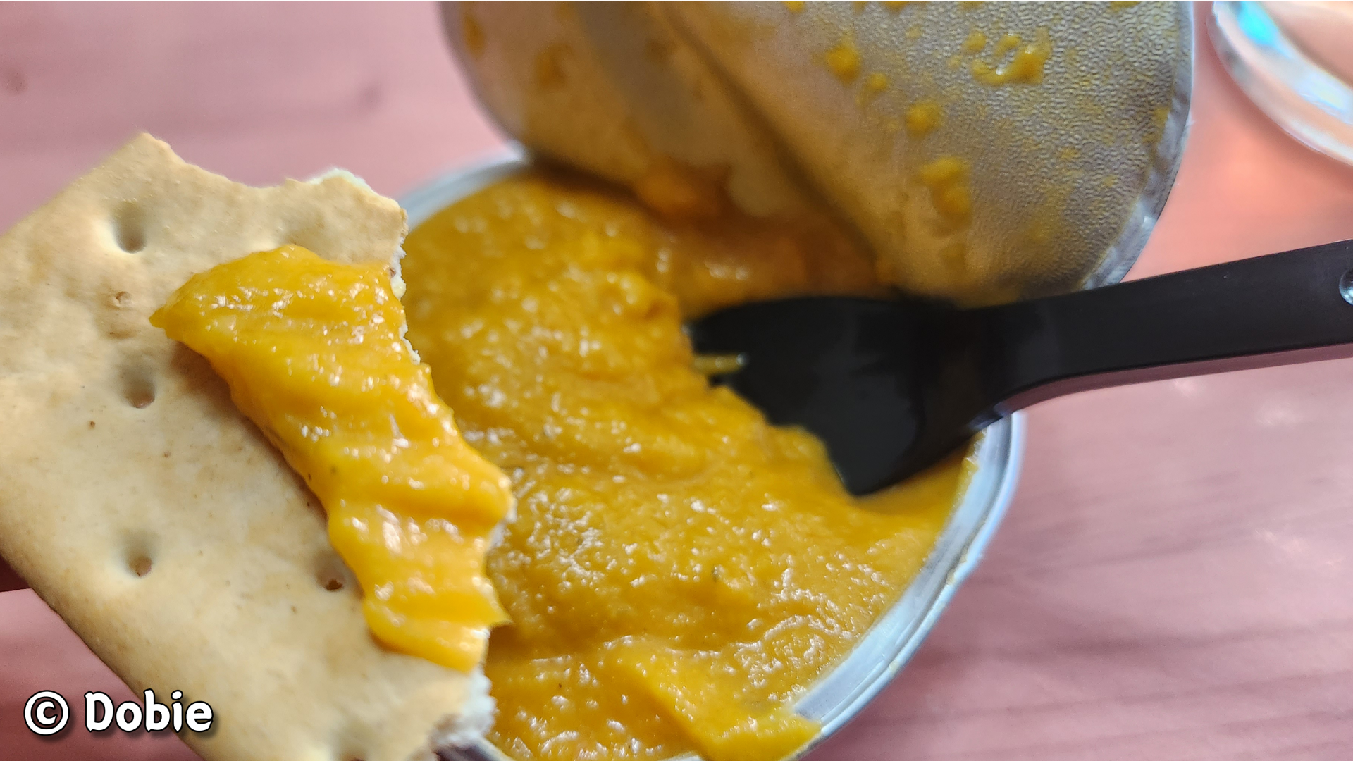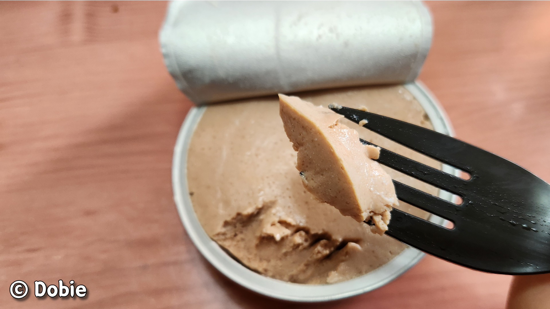파테는 이전에 스페인군 전투식량에서 먹었던 것과는 다르게 촉촉하고 푸딩 같은 느낌이 들었지만 향신료향은 별로 나지 않고 비린 향이 많이 났습니다. 또한 성분표를 번역해 보니 돼지 간 파테가 아니라 소 간 파테였습니다. 이게 돼지와 소의 차이 인지, 아니면 단순히 제조 과정에 있어 차이인지는 모르겠지만 식감은 많이 차이가 나 보였습니다. 저는 너무 비려서 이 상태로는 먹을 수 없었습니다...