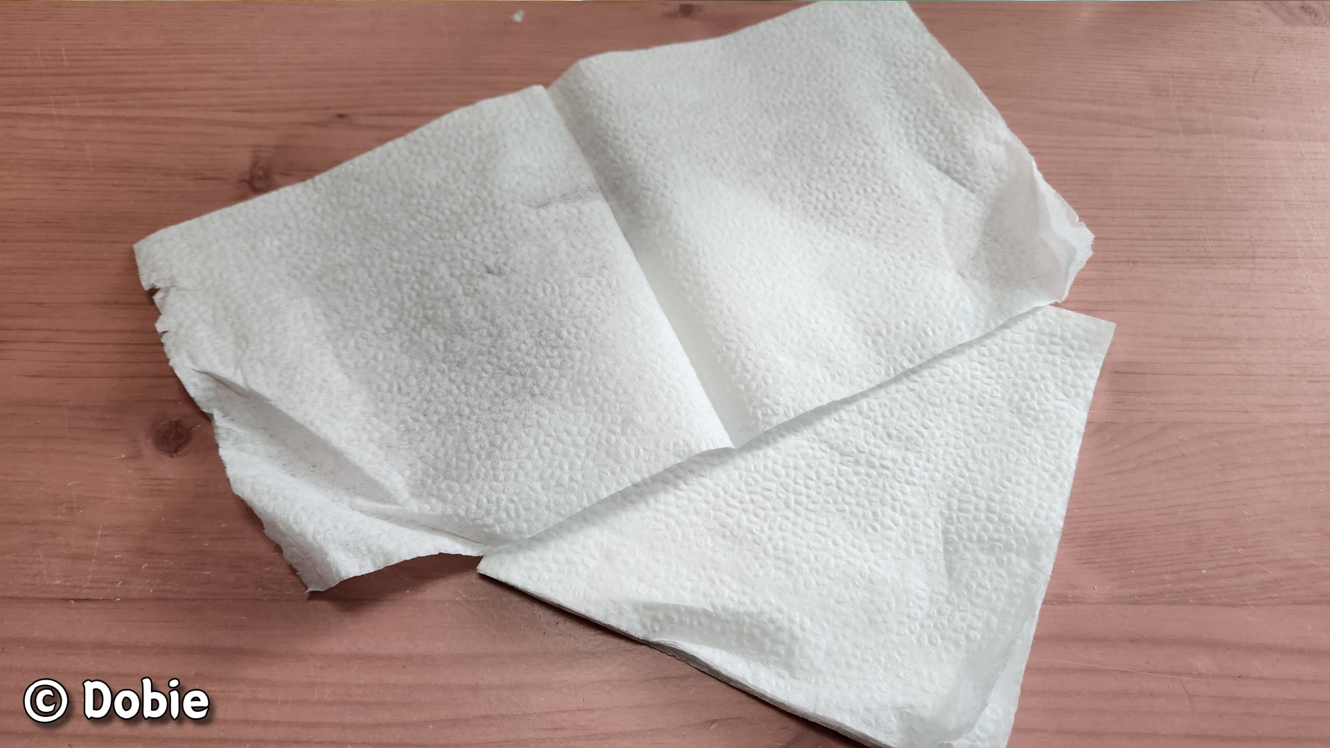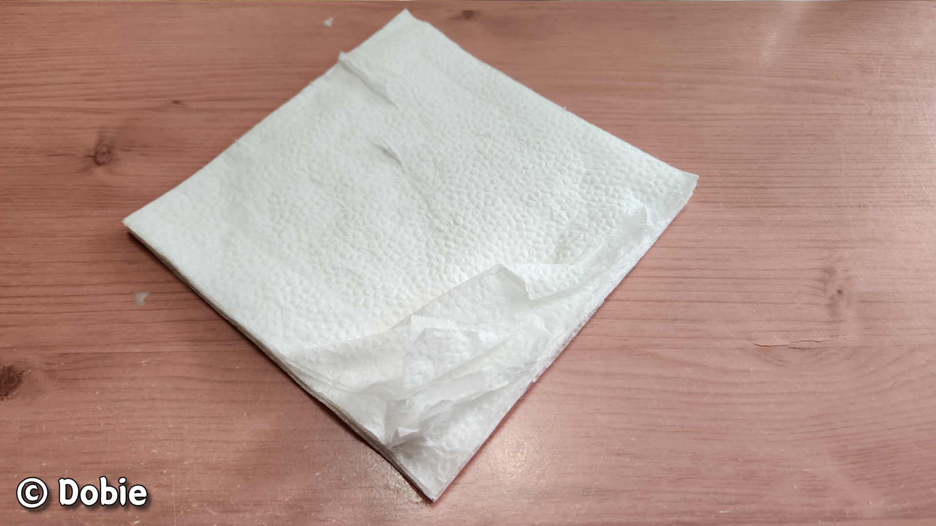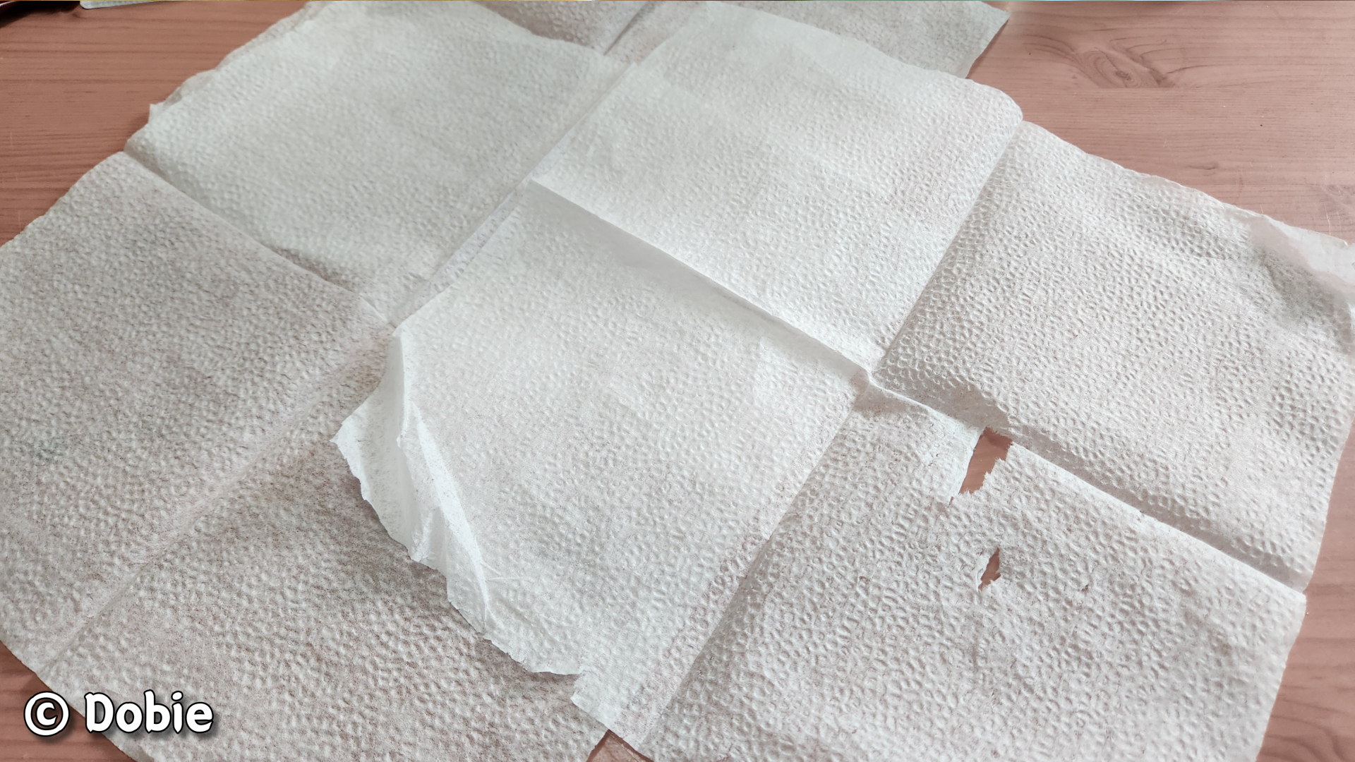 티슈는 큰 사이즈로 3장이 들어있는데 구겨져 있는 데다가 펼쳐보면 여기저기 찢어져 있습니다. 재밌네요.