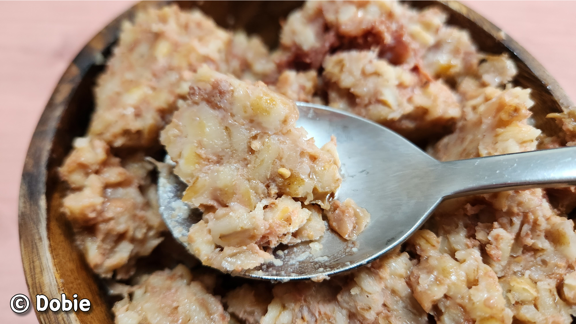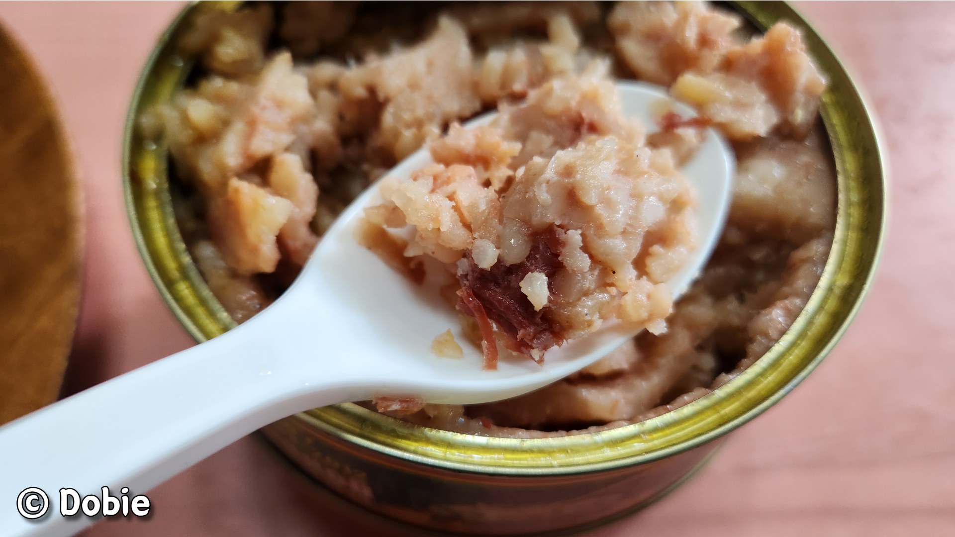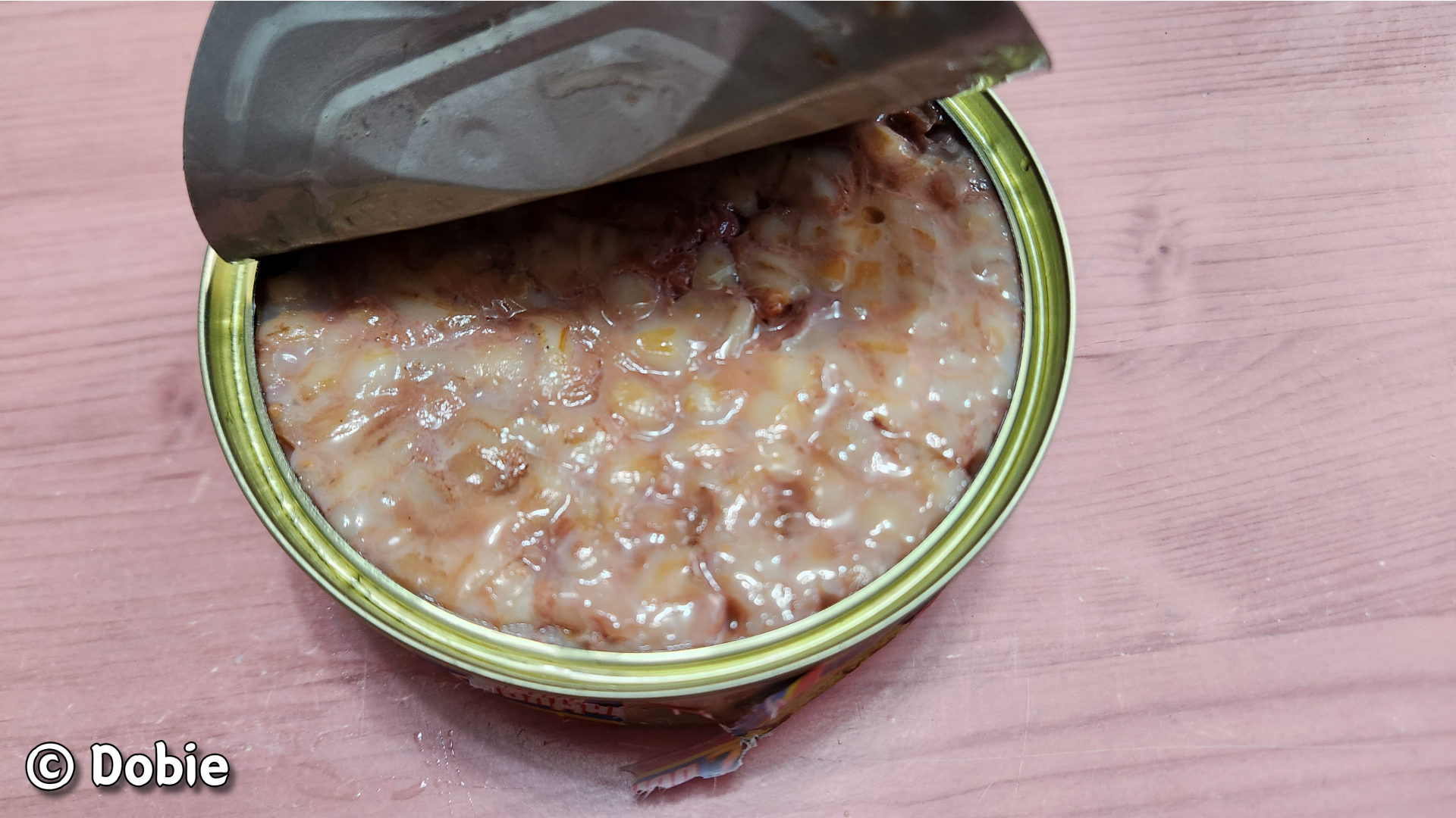 음... 문제의 소고기 메밀 죽입니다. 다른 캔과는 다르게 오픈했을 때 기존의 향과 더불어 코를 톡 쏘는 암모니아 향이 났습니다. 아무리 통조림의 보존 기간이 길다고 하더라도, 통조림의 보관 과정에서 문제가 생겨 음식이 변질된다면 먹었을 때 위험하다는 이야기를 들었고, 암모니아 향이 결코 정상적인 향은 아니라는 생각에 먹지 않고 그대로 버리게 되었습니다. 때문에 맛을 보지는 못했지만, 기본적인 향으로 판단하건대 맛은 다른 두 죽과 크게 다르지 않을 것으로 생각됩니다.