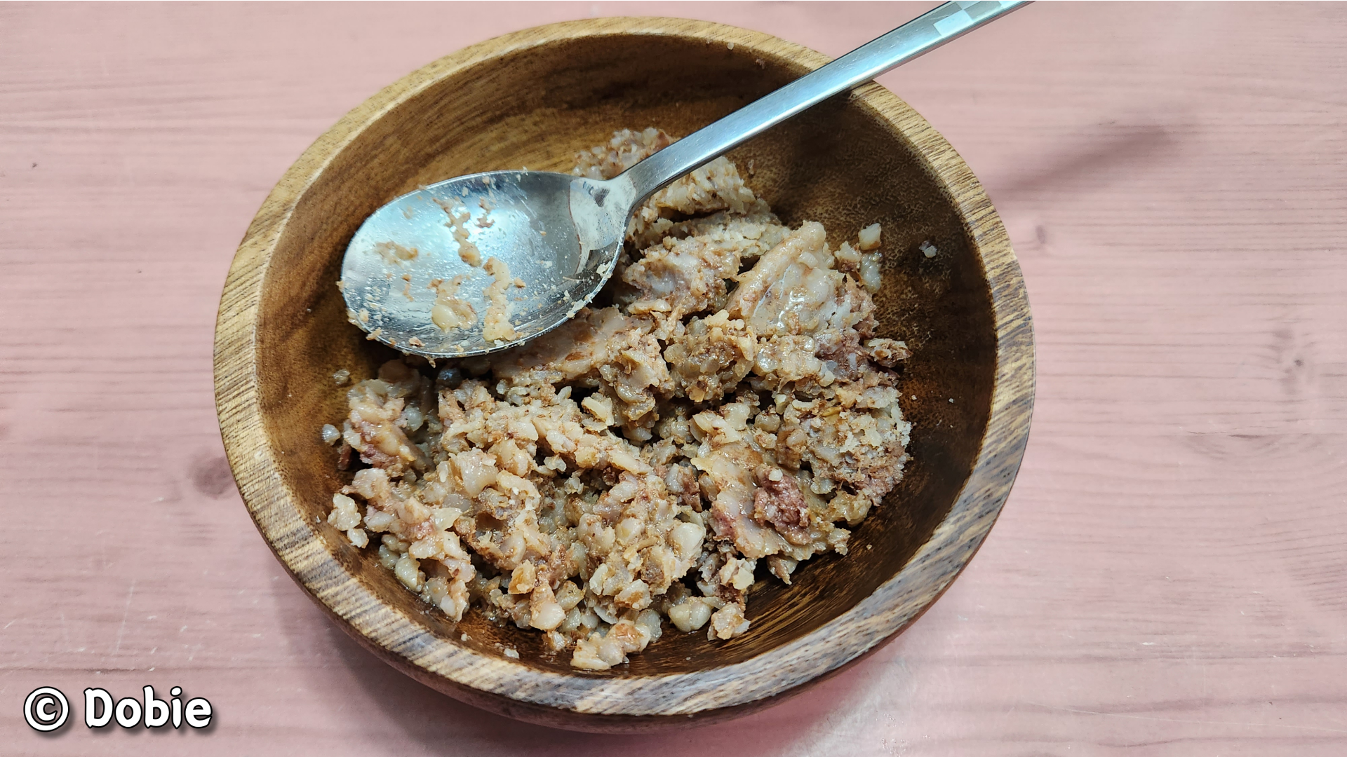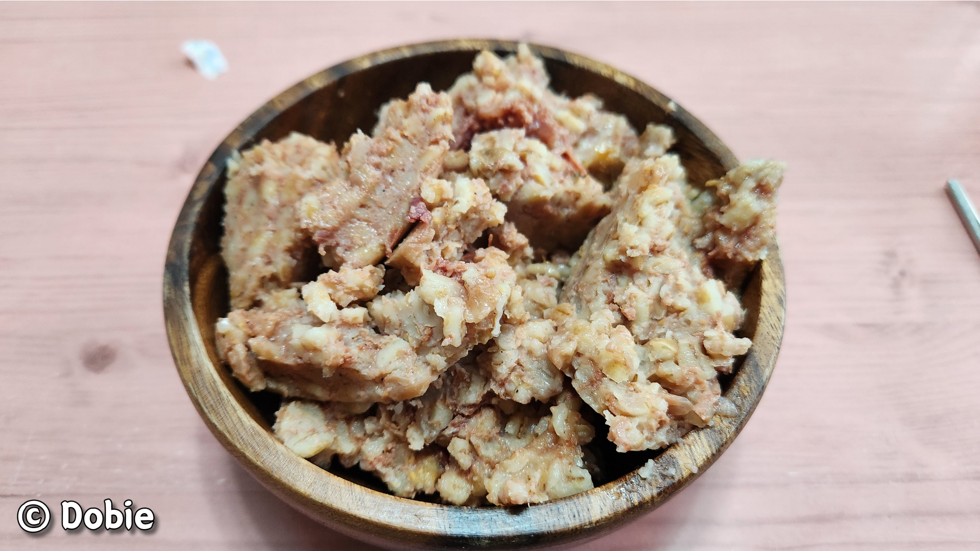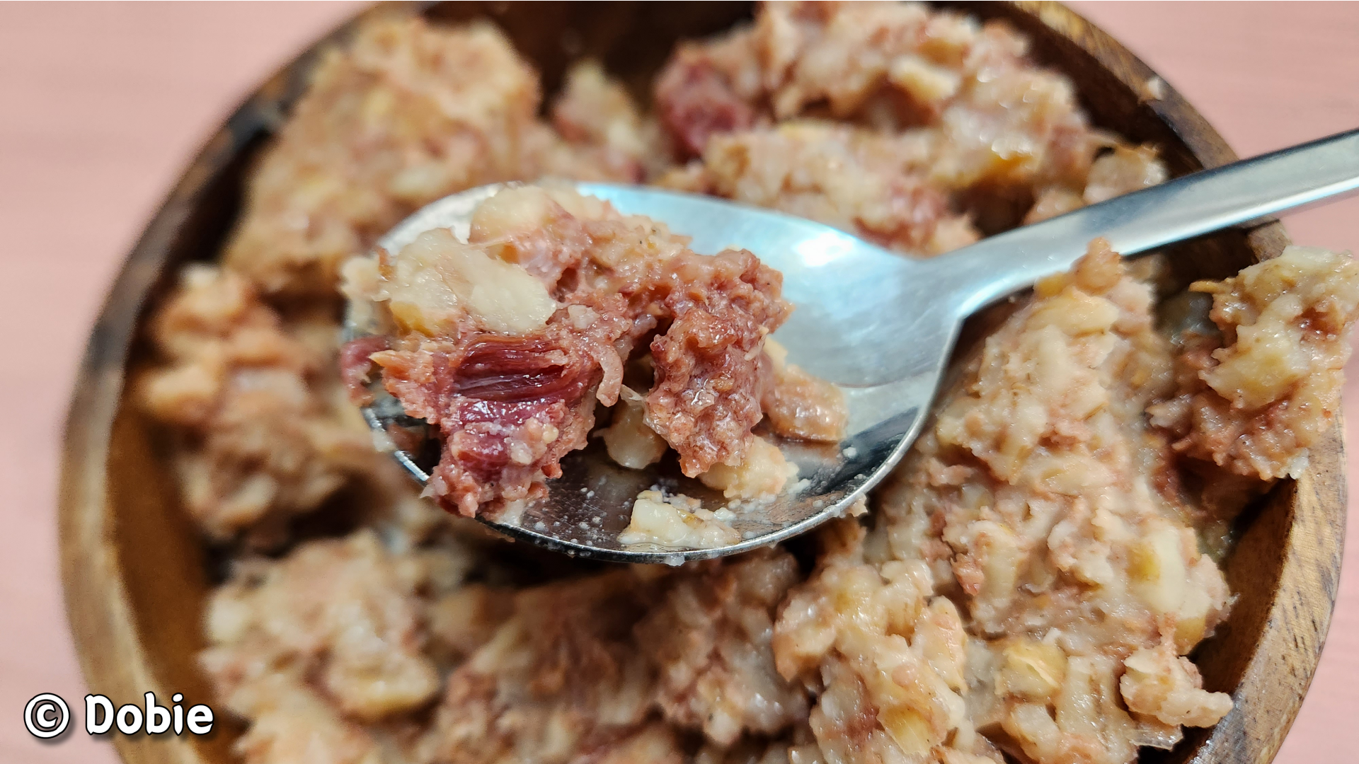 음... 문제의 소고기 메밀 죽입니다. 다른 캔과는 다르게 오픈했을 때 기존의 향과 더불어 코를 톡 쏘는 암모니아 향이 났습니다. 아무리 통조림의 보존 기간이 길다고 하더라도, 통조림의 보관 과정에서 문제가 생겨 음식이 변질된다면 먹었을 때 위험하다는 이야기를 들었고, 암모니아 향이 결코 정상적인 향은 아니라는 생각에 먹지 않고 그대로 버리게 되었습니다. 때문에 맛을 보지는 못했지만, 기본적인 향으로 판단하건대 맛은 다른 두 죽과 크게 다르지 않을 것으로 생각됩니다.