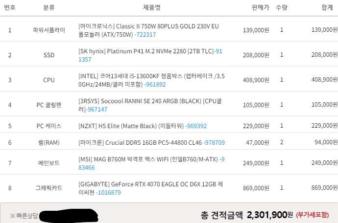 FHD 환경에서의 게이밍, VR 게임, 간단한 그래픽 디자인 및 영상 편집 모두가 가능한 PC로 맞췄습니다. 예산은 설정했던 것 보다 1,900원 넘었지만 허용할 수준이어서 확정하게 되었습니다.