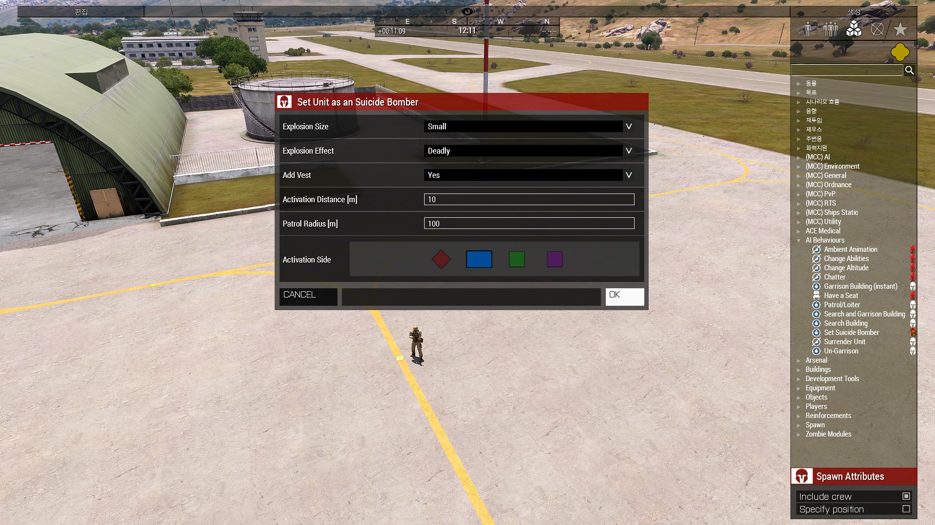 ⑤ Patrol Radious (순찰 반경) : Suicide Bomber가 순찰을 할 반경을 미터단위로 설정