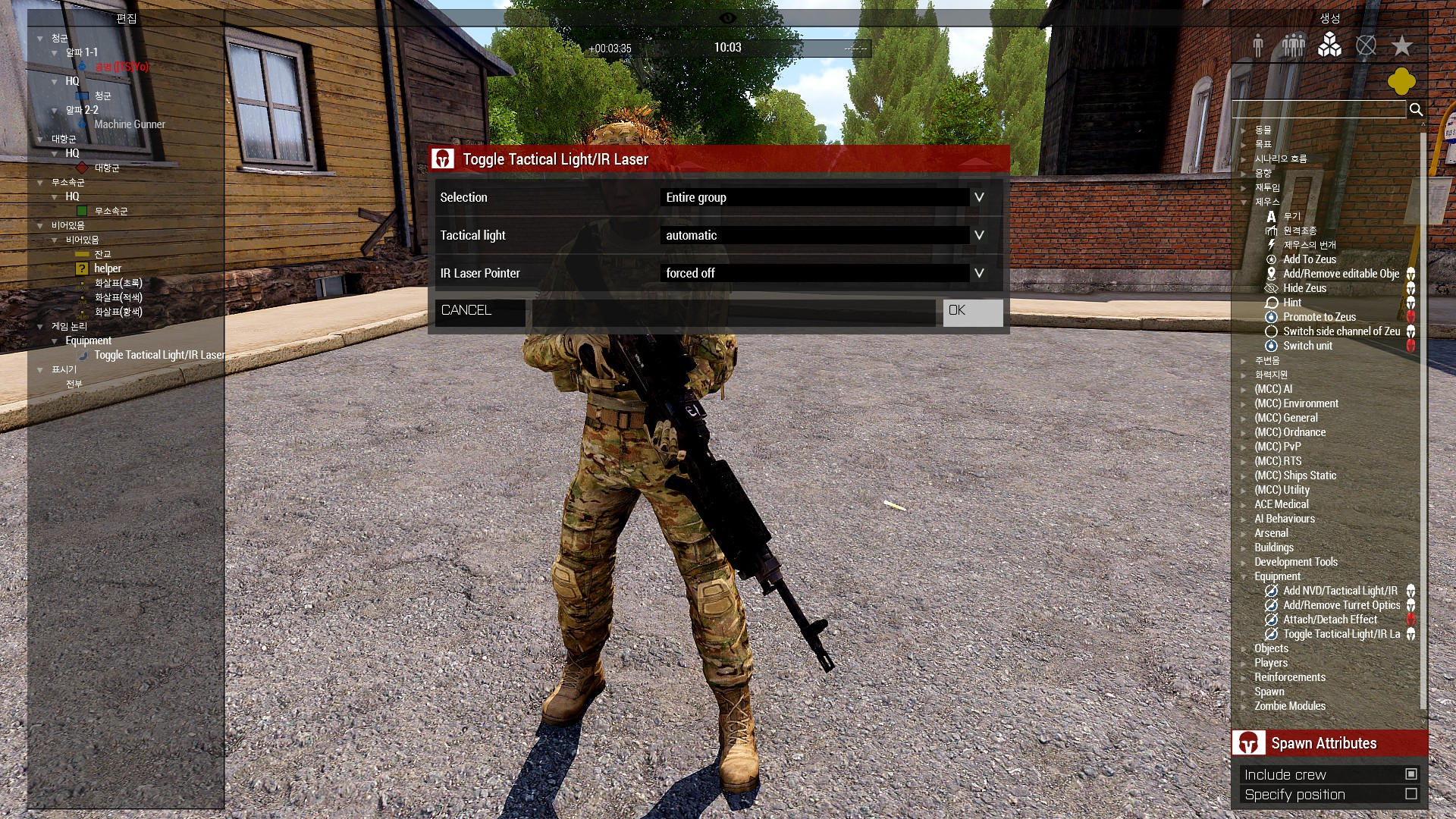 Unchanged (바꾸지 않음) / None (장비 없음) / Tactical Light (전술 조명) / IR Laser Pointer (적외선 지시