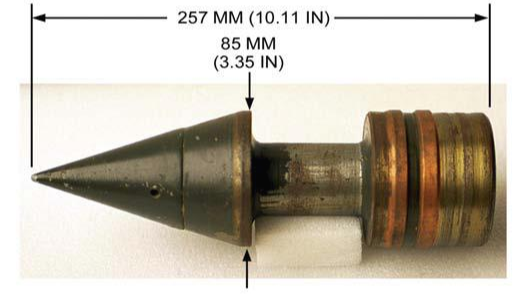 APCR혹은 HVAP탄(이후 APCR이라고 하겠습니다)은 Projectile의 구경보다 관통자의 구경이 작은 형태의 탄으로 기존 AP계열 탄의 단점을 개선하기 위해 개발된 탄입니다. AP계열 탄은 실질적으로 관통을 하는 부분의 직경이 탄의 직경과 거의 비슷하기 때문에 무게가 무겁고 탄의 구경이 커지면 커질수록 무게는 기하급수적으로 증가합니다. 무게가 무거워지면 당연히 속도가 줄어들며, 속도가 줄어들면 운동에너지는 줄어든 속도의 제곱으로 줄어들게 됩니다. 따라서 무게를 줄이더라도 속도를 개선하고자 하는 시도가 있었고 APCR탄은 탄의 구경보다 작은 구경의 관통자를 연성이 높은 금속이 감고있는 형태로, 동구경 AP계열 탄에 비해 무게가 가벼워 속도가 훨씬 빠릅니다. 또한 관통자의 무게가 탄 무게의 대다수를 차지하고 있기 때문에 관통자는 상당히 높은 운동에너지를 가집니다. 거의 대부분이 전차포탄에서 사용됩니다.