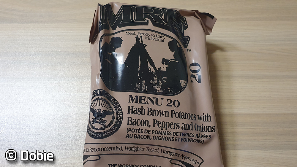 미군 15년 MRE 20번 메뉴 Hash Brown Potatoes with Bacon, Peppers and Onions (베이컨, 후추, 양파를 곁들인 해쉬브라운) 을 먹었습니다!